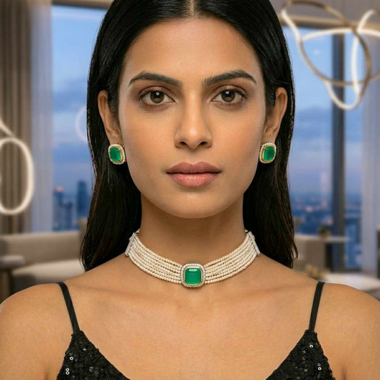 CHOKER NECKLACE & EARRINGS SET – Pearls and gemstones