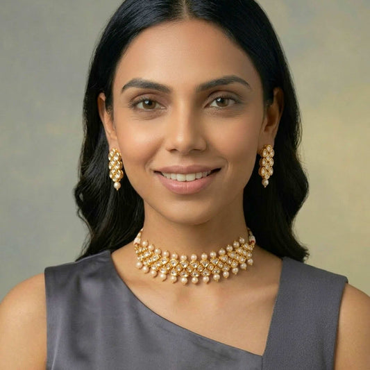 CHOKER NECKLACE WITH PEARLS – Includes Matching Earrings